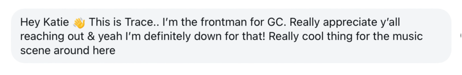 The first and most crucial part of the planning was finding our bands to interview. I cold-DM’ed as many local bands and musicians as I could, and everyone was (thankfully) receptive!